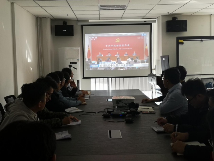 百年大党风华正茂,百年成就举世瞩目,百年经验弥足珍贵。公司党委组织广大党员、干部、师生满怀党史学习教育的热情,分别在雁塔校区和骊山校园公司会议室、教室、科研团队工作室等地方,以及师生利用各种方式自行收看等形式,通过电视、网络等收听收看了党的十九届六中全会新闻发布会,广大党员、干部、师生听得认真、看得专注、记得仔细,积极畅谈学习感悟。