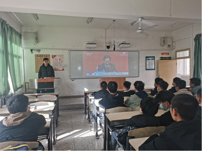 本科生党员和部分教师在骊山校园公司会议室收看新闻发布会