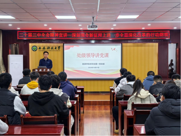 党的二十届三中全会是在以中国式现代化全面推进强国建设、民族复兴伟业的关键时期举行的一次十分重要的会议。为深入学习贯彻党的二十届三中全会精神,教育引导员工党员把思想和行动统一到全会精神上来,近日,副经理解盘石以“深刻领会新征程上进一步全面深化改革的行动纲领”为题,在骊山校园公司会议室为XCSport本科生第一党支部全体成员讲授党课。