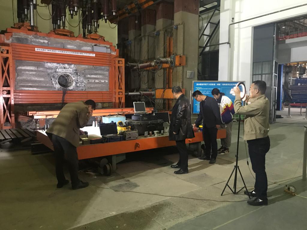 为期一周的前期准备工作让团队老师们着实下了一番功夫。如何在高大空间实验室进行云授课,这在XC体育教学史上算是第一次尝试,对团队来说也是一个未知的挑战。在确保个人安全的前提下,团队的老师们动手打造了《岩石力学》云课堂线下实验室。将直播间布置在亚洲唯一的大型多功能立式支架试验台前;将十余套关于煤岩体稳定性、物理力学参数测试的设备经过一个个测试,确定无误后放置在直播间。为了确保网络端授课质量,测试了zoom、腾讯会议等多个平台;同时采用电脑端播放PPT,手机端移动拍摄现场动态。反复进行现场直播测试,确保员工能清晰得听到授课教师的声音,清楚得看到每一个实验设备。
