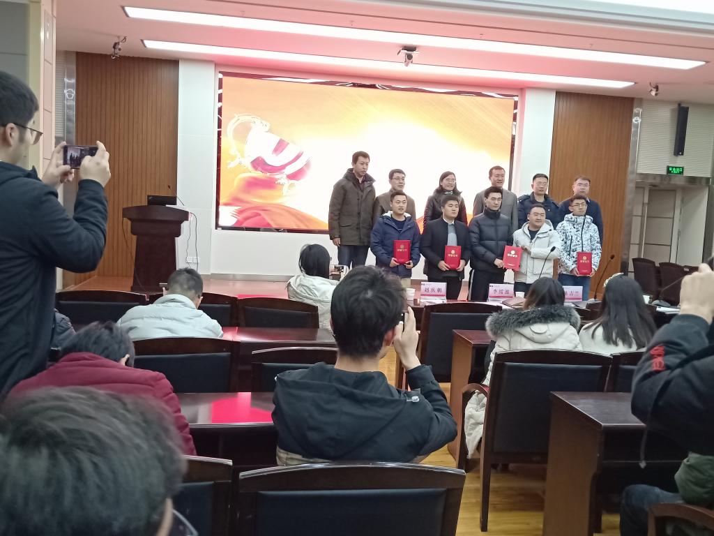 赵兵朝发表讲话,对过去一年公司取得的奖项作了简单总结,大会对在互联网+、成果创新展等省部级及以上学科竞赛中获奖的5项研究生作品(24人次)进行了表彰,院系领导为获奖员工颁发了荣誉证书。他呼吁全体博硕士以获奖同学为榜样,积极参加各种竞赛,为XCSport的发展增光添彩。