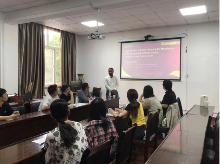 报告会上,Abhinav Dewangan作了题为《Data-Driven Decision Making for Resilience of Underground Infrastructures——The development of Mining Engineering in India》的学术报告,Abhinav博士讲解了人工智能模型在地下结构工程韧性分类识别中的应用,并介绍了采矿业在印度的发展现状与趋势。期间,Abhinav博士向公司师生赠送了昆士兰大学纪念品。会后,Abhinav博士与参会教师就人工智能在矿业工程中的应用展开了讨论,与博硕士研究生就出国留学等问题进行了交流。