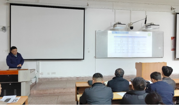 采矿工程系党支部书记郭卫彬副教授介绍了毕业实习和毕业设计分组原则以及最终安排结果。此次参加毕业实习及设计员工130人、指导教师51人,通过师生互选,共分为45个小组。