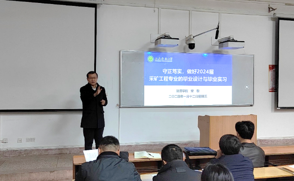 柴敬教授做了“守正笃实,做好2024届采矿工程专业的毕业设计与毕业实习”报告,回顾了XC体育采矿工程专业毕业实习及毕业设计开展历史,详细讲解了毕业实习及任务安排。他强调实习是开展毕业设计的基础,要珍惜实习机会,完整收集实习资料,推进“记-思-行”的学习范式,以积极向上的精神全身心投入到实习过程中,保证毕业实习更好地服务毕业设计。