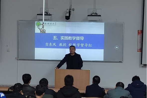 校教学督导组专家贠东风教授开展实践教学督导工作,贠老师要求员工在毕业设计过程中要多与指导教师沟通交流,多提问题。他强调了遵守纪律和严于律己的重要性,并将员工箴言带给员工,希望大家通过毕业设计这一活动提升自身知识综合运用能力。