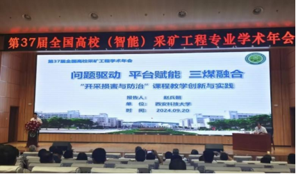 采矿年会期间,赵兵朝教授作了题为《问题驱动、平台赋能、三煤融合,“开采损害与防治”课程教学创新与实践》的主题报告,探讨了一流课程教学创新方法和经验,得到了与会专家和学者的高度评价。研究生林伟典、韩志成、冯立等在第六届矿业工程领域研究生论坛上分别作了题为“基于倾角效应的大倾角煤层采动裂隙演化定量表征”“分布式光纤传感技术在回采巷道底板松动圈监测中的应用”“房式采空区矸石充填作用下遗留煤柱长期稳定性分析”等学术报告,分享了自己的研究成果,拓宽了学术视野,展现了学术风采。青年教师王伟、姬松涛参加讲课比赛分别荣获一等奖和二等奖。员工实践作品分别荣获一等奖3项、二等奖12项、三等奖13项,并被评为最佳组织奖单位。