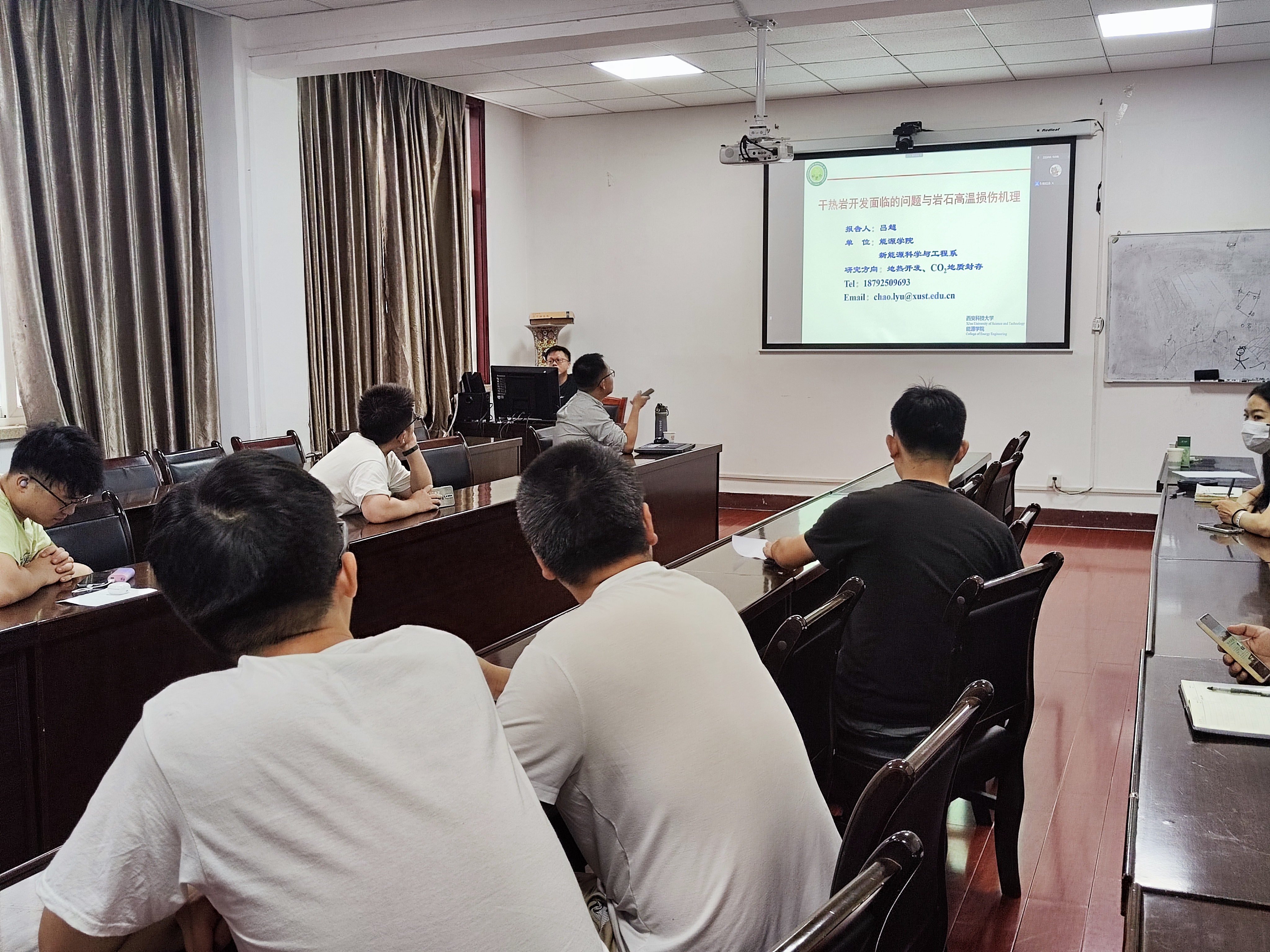王若帆老师从充填开采中充填体的稳定性、充填对围岩的支护作用及岩石蠕变三方面深入浅出的介绍了侧暴露充填体的稳定性与力学行为;姬松涛老师基于冲击地压条件下对工作面动力响应及控制因素通过不同数值模拟软件结合进行分析,并对不同数值模拟软件结合方法进行了全面介绍;吕超老师对干热岩开发面临的问题进行了详细介绍,基于高温高压下岩石物理力学性质演变和破坏进程对高温岩石损伤机理进行了全面分析。