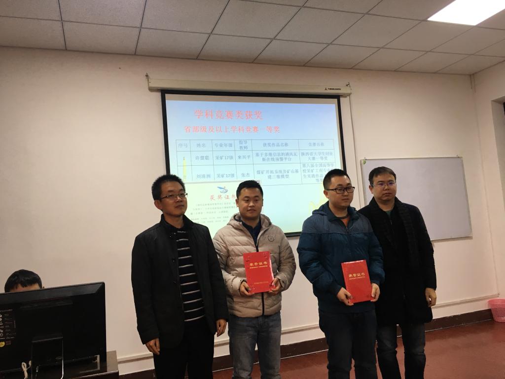 12月13日下午,​公司在雁塔校区召开2018年研究生学科竞赛表彰大会。​XCSport副经理赵兵朝、党委副书记费秀水、建环系主任姜华、采矿系副主任王红伟、公司公司产品办聂丽华和宋晓华,公司全体博硕士研究生参加了大会,大会由赵兵朝主持。