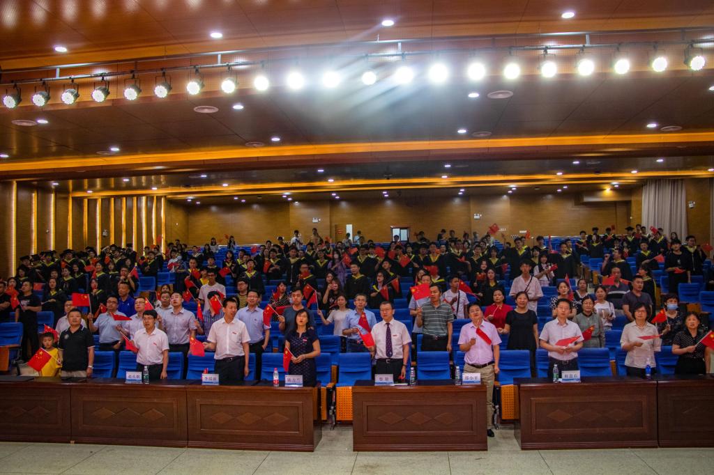 恰逢建党百年之际,现场用快闪和合唱的方式,全体师生共同高歌,表达了浓浓的、热烈的爱国之情,诠释了践行“祖国利益高于一切”的决心。