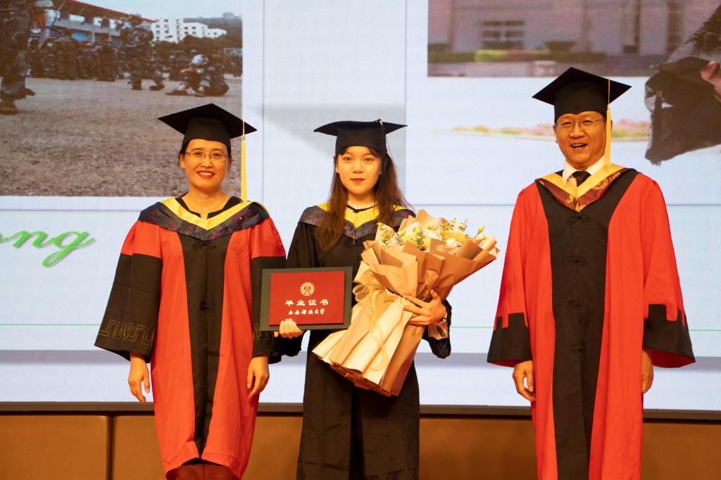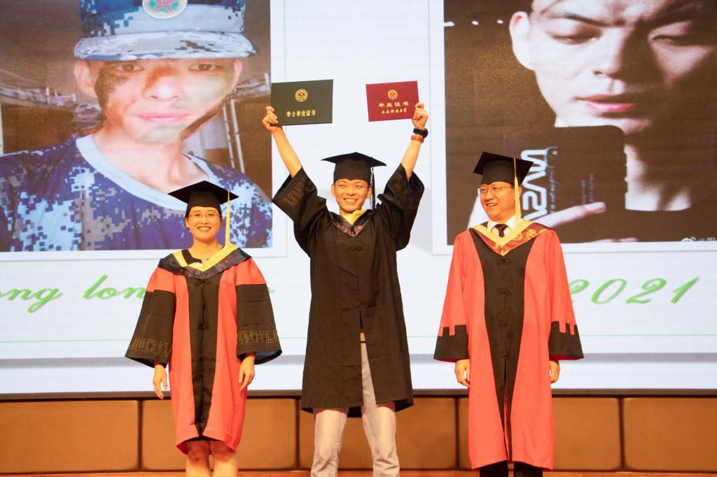 庄严的学位授予仪式开始,党委书记陈吉兰、经理柴敬用了80分钟的时间为公司全体2021届本科毕业生一一颁发了毕业证书和学位证书。正冠拨穗,流苏扶正,为每一位毕业生送上一张具有刻骨铭心的学位合照。