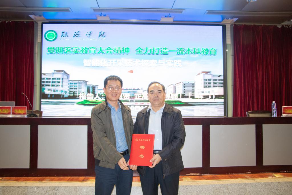唐恩贤教授受聘XC体育客座教授和XCSport校外辅导员,公司党委书记陈吉兰、副经理解盘石分别向唐恩贤颁发了聘书。唐恩贤教授随后做客“能源讲坛”,做了题为“智能化开采技术探索与实践”的主题报告,主题报告中强调了智能化开采是煤炭工业升级转型及技术革命的必经道路,向师生介绍黄陵矿业公司智能开采技术的应用现状。唐恩贤教授还与同学们共同思考今后智能化开采发展前景,畅想了5G技术与煤炭远程操控技术的结合,引发同学们热烈讨论。他鼓励同学们努力学习,尽早攻克科研难题,为祖国能源事业做出贡献。