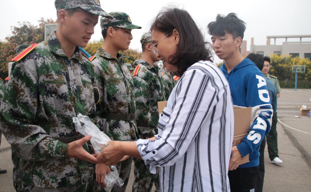 9月11日,军训旅一营营长兼教导员、公司党委书记陈吉兰,经理柴敬,副经理赵兵朝、解盘石,院学工办主任、团委书记万超及辅导员赵森在骊山校园新生军训训练场看望慰问一营全体参训教官和学员。
