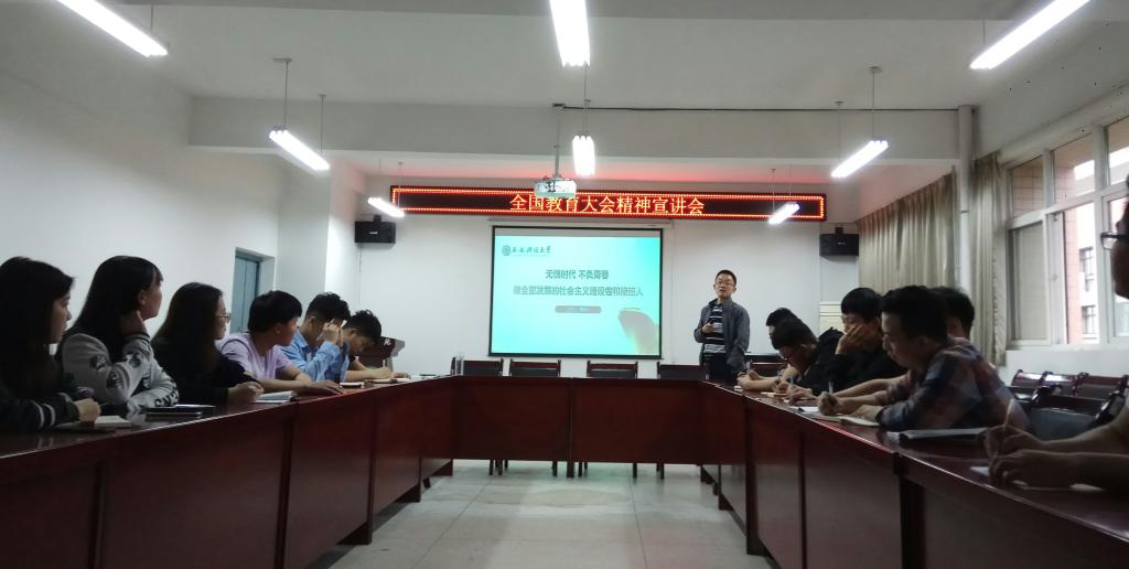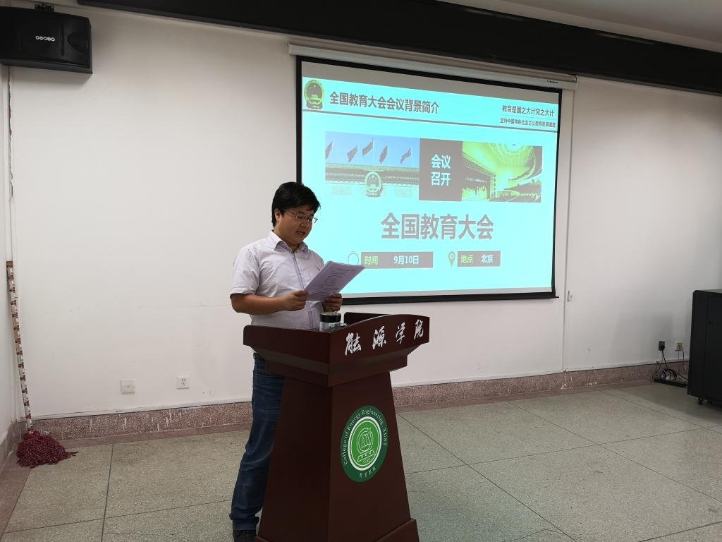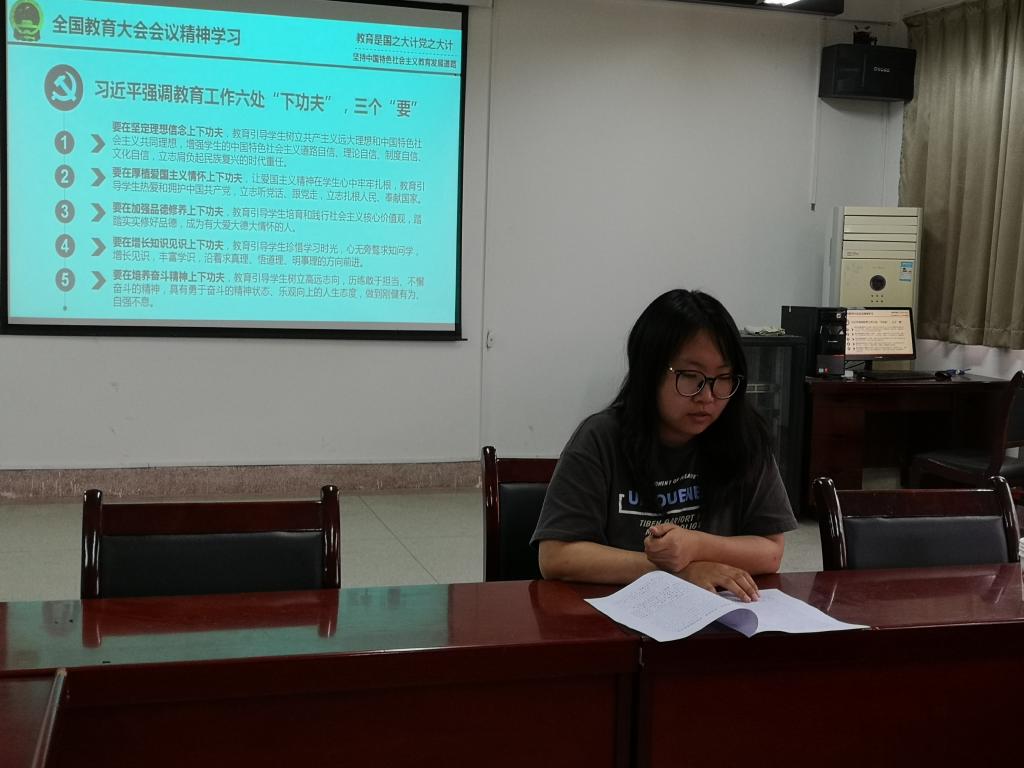 公司党委副书记费秀水从全国教育大会召开的时代背景和重要意义、习近平总书记关于教育的重要论述以及“六个下功夫”等方面,并结合员工教育管理实际对全国教育大会主要内容和习近平总书记重要讲话的科学内涵进行了全面解读。院学工办主任、团委书记万超向全体团学干部强调了全国教育大会对青年员工成长成才的重要意义,要求各团支部通过主题团日活动等形式,掀起学习全国教育大会精神的热潮,在学习和实践中坚定理想信念、厚植爱国情怀。辅导员宋晓华、王雪琪、吴蒸和员工重点分享了习近平总书记金句,引导员工树立远大理想、提升自身修为、努力完成学业、争做新时代有为青年。