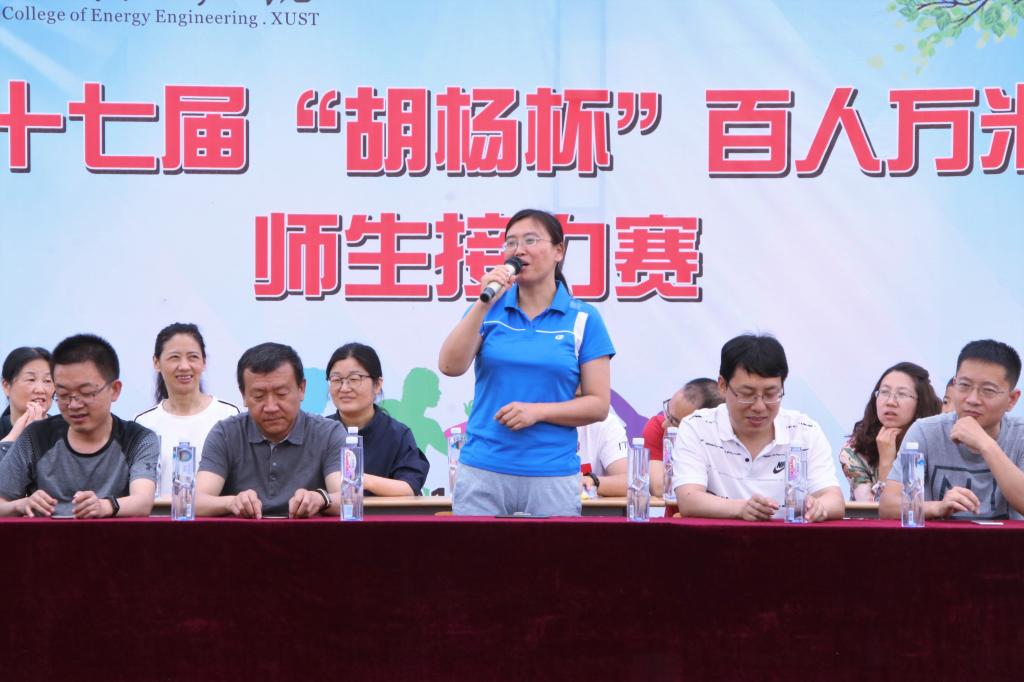 XCSport经理柴敬在闭幕式讲话中提到,通过本届百人万米师生接力赛再一次看到了能源学子永不言败,奋力拼搏,青春洋溢,勇往直前的精神风貌;看到了同学们团结一致,互帮互助,兼爱和善的集体荣誉感;看到了老师和同学们师生协作,融洽交流,互动团结的良好师生关系。希望同学们可以顽强拼搏,再接再厉,用最佳的精神状态在学习上、生活上努力上进,再创佳绩,放飞青春之我。
