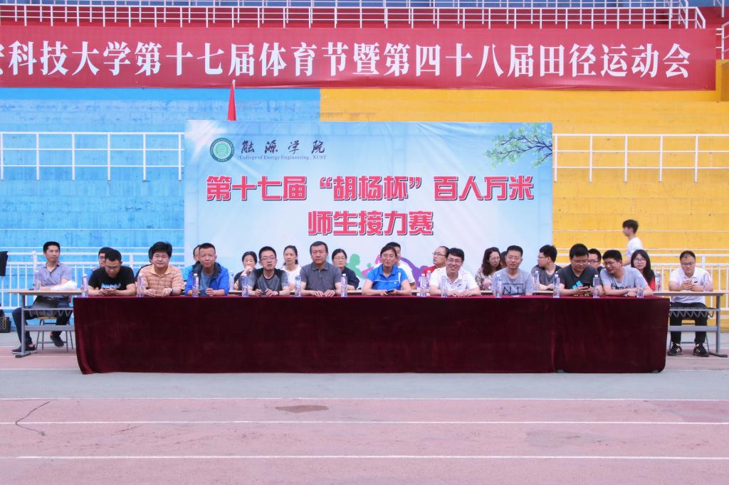 5月26日,公司第十七届“胡杨杯”百人万米师生接力赛在临潼校区骊山校园田径场拉开帷幕。公司党委书记陈吉兰,经理柴敬,党委副书记费秀水,副经理赵兵朝、解盘石,院办公室主任杨创明,学工办主任、团委书记万超,采矿系主任丁自伟,采矿系、建环系教师代表,全体班主任、辅导员及2016级、2017级、2018级所有班级共同参加了本次比赛。