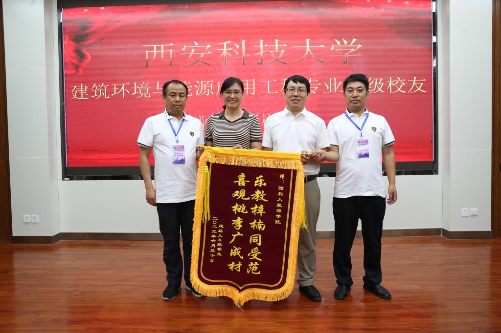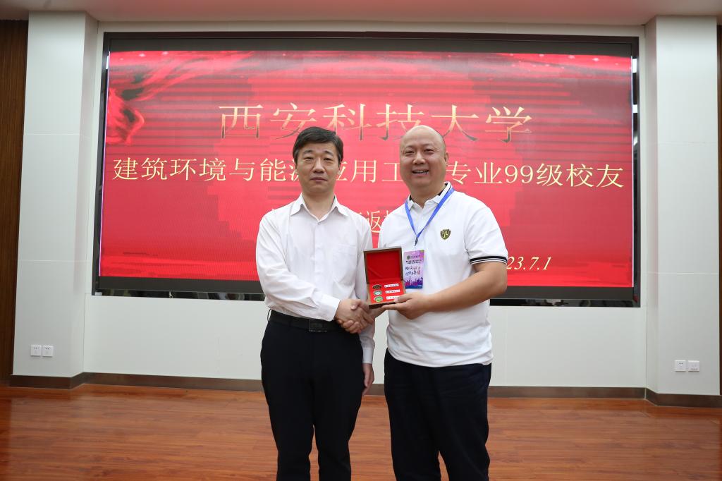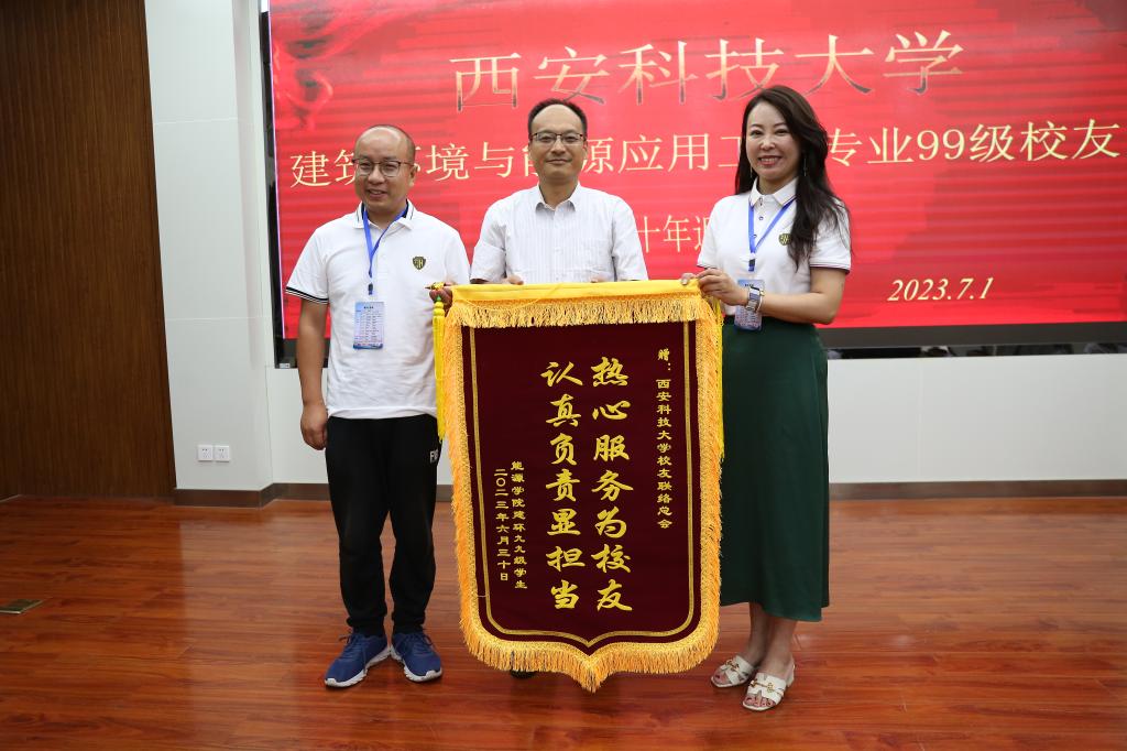 最后,蒋林向员工代表赠送员工纪念品,建环99级毕业员工向对外联络与合作处和XCSport赠送了锦旗。