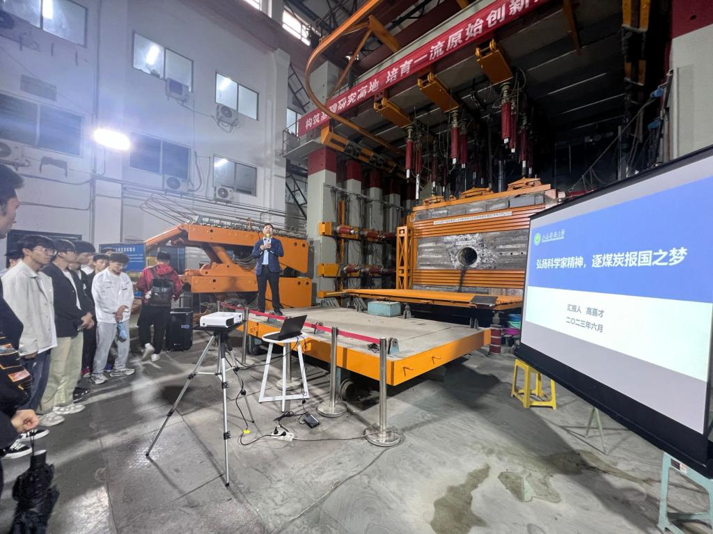 揭牌仪式后,重点实验室副主任高喜才从新中国第一位采煤女专家吴绍倩教授的事迹展开讲解,引导同学们学习老一辈科学家“胸怀祖国、服务人民的爱国精神”“迎难而上、敢为人先的创新精神”“严谨治学、追求真理的求实精神”“淡泊名利、奖掖后学的奉献精神”。随后,XCSport副经理解盘石介绍了难采煤层智能开采数字孪生实验平台,以及研究团队“迎难而上,求真力行”的科学精神。