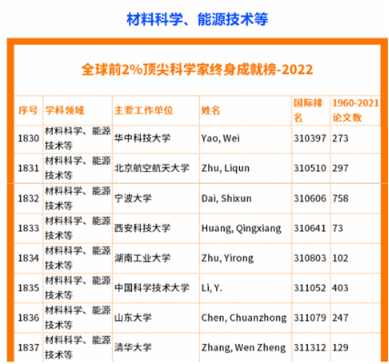 2022年10月10日,由斯坦福大学John P.A.Ioannidis教授团队发布的全球前2%顶尖科学家榜单更新了2022年版本,这也是该团队公布的第四版本。此前该团队于2019年7月发布了第一版,于2020年10月发布了第二版。斯坦福大学John P.A.Ioannidis团队的科学家排名的前两个版本结果均发表在美国《普洛斯生物学杂志》(PLoS Biology)。该榜单基于Scopus数据库,使用了如下六种关键因素的指标来进行打分:1)总引用量;2)Hirsch H-index;3)共同作者修正的Schreiber Hm-index;4)单独作者;5)单独或者第一作者;6)单独、第一或者最后作者的文章引用量。本次发布的2022年版本,统计数据时间节点为1960-2022年,涵盖全球200409位科学家。榜单主要分为“终身科学影响力排行榜(1960-2022)”和“2022年度科学影响力排行榜”两个榜单。公司黄庆享教授位列“材料科学、能源技术等领域”全球前2%顶尖科学家-终身榜。