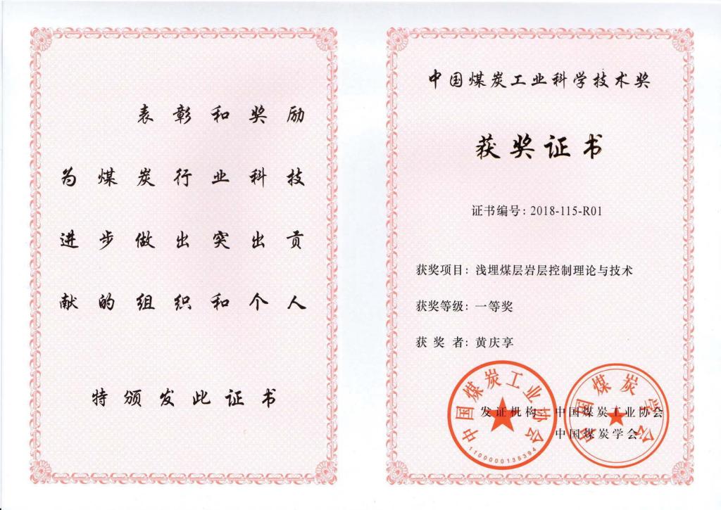 2019年5月13日上午,在北京会议中心隆重召开中国煤炭工业协会五届理事会第二次会议,大会对获得2018年度中国煤炭工业科学技术一等奖举行了颁奖仪式,公司黄庆享教授主持完成的“浅埋煤层岩层控制理论与技术”荣获一等奖,黄庆享教授代表获奖项目登台领奖。蒋林董事长、王贵荣副董事长和文虎处长及获奖人员代表陈杰教授等出席了大会。本奖项的获得是XCSport采矿系黄庆享教授团队继2016年获得陕西省科学技术一等奖后所取得的又一次重大突破,是中国煤炭工业协会对该团队20多年在浅埋煤层岩层控制领域所做出的重要贡献的充分肯定,标志着XC体育矿业工程学科在浅埋煤层岩层控制领域具有鲜明特色和重要影响力。