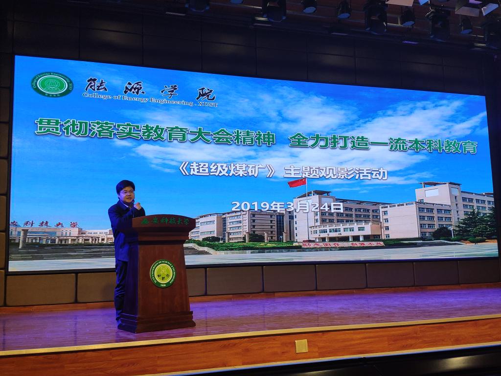 3月24日,公司在临潼校区骊山校园煤炭科技中心一楼报告厅组织员工观看央视4集系列专题片《超级煤矿》,公司全体在校本科生600余人参加活动。观影活动由公司学工办主任、团委书记万超主持。
