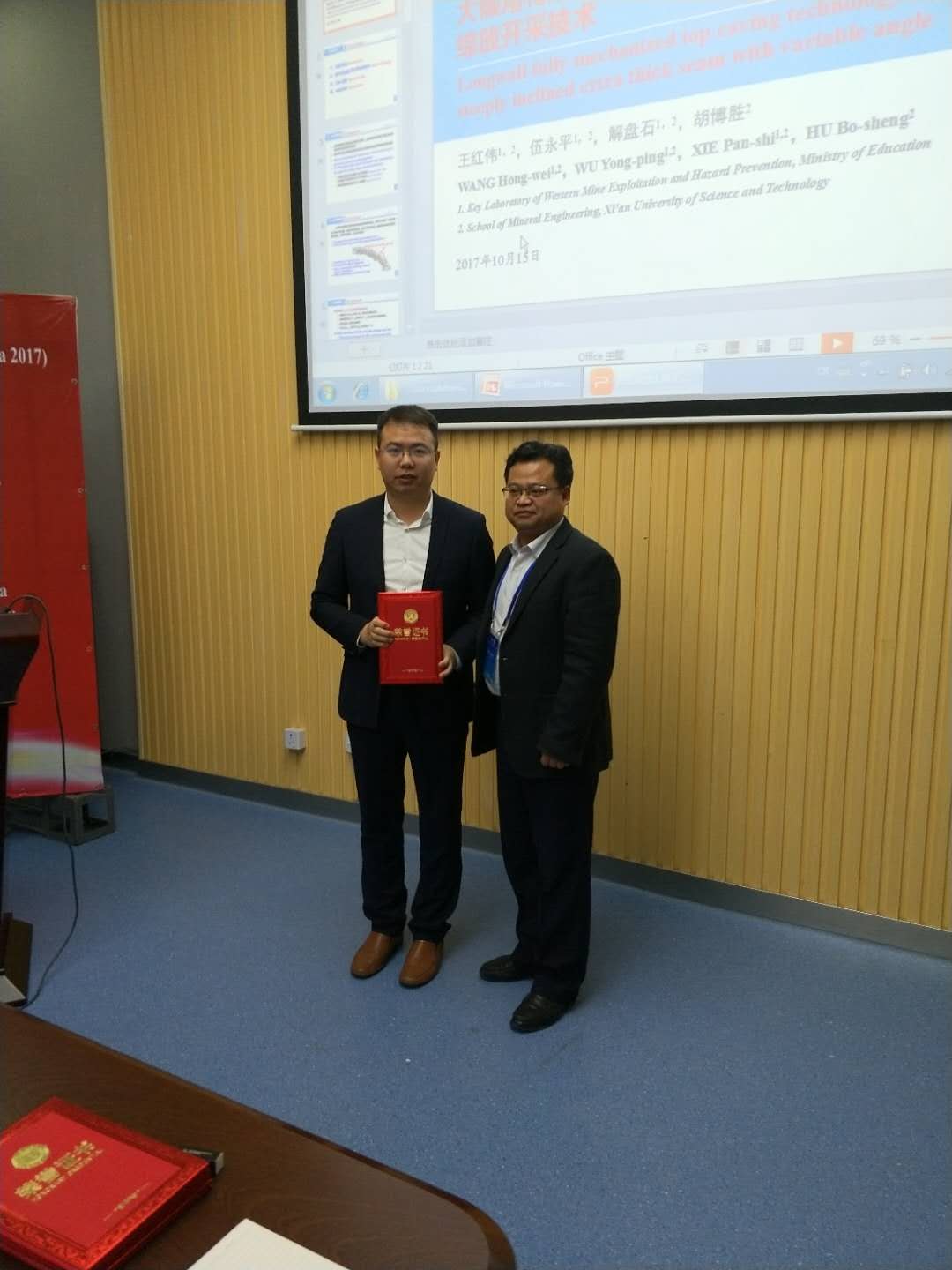 黄庆享、来兴平、贠东风教授、王红伟、郎丁博士分别做了《浅埋近距离煤层群分类及其支护阻力确定》、《急倾斜煤层安全高效开采理论与技术》、《高动压区段煤柱中巷变形破坏机理与修复技术》、《大倾角特厚煤层走向长壁变角度工作面综放开采技术》、《大倾角软煤综放采场顶煤介态转换界面展布形态研究》的学术报告,受到与会代表的广泛关注。