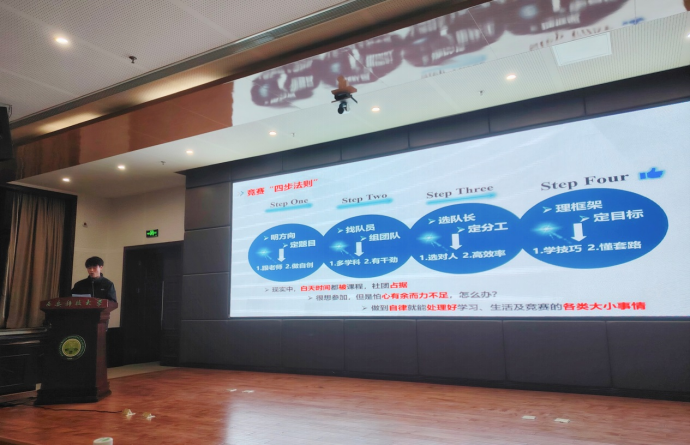 活动第二阶段,两位国家奖学金获得者——建环2002班许森蕾和采矿2102班孙嘉豪,分别以《用奋斗创造不凡》和《为梦想不止步》为题开启了XCSport“榴苑追梦”首场报告。两位同学分享了自己的成长经历、学习经验、参与实践和服务班级同学情况,特别详细介绍了自己参加科创竞赛全过程、注意要点和心得体会。他们真诚又风趣的交流博得现场阵阵掌声。