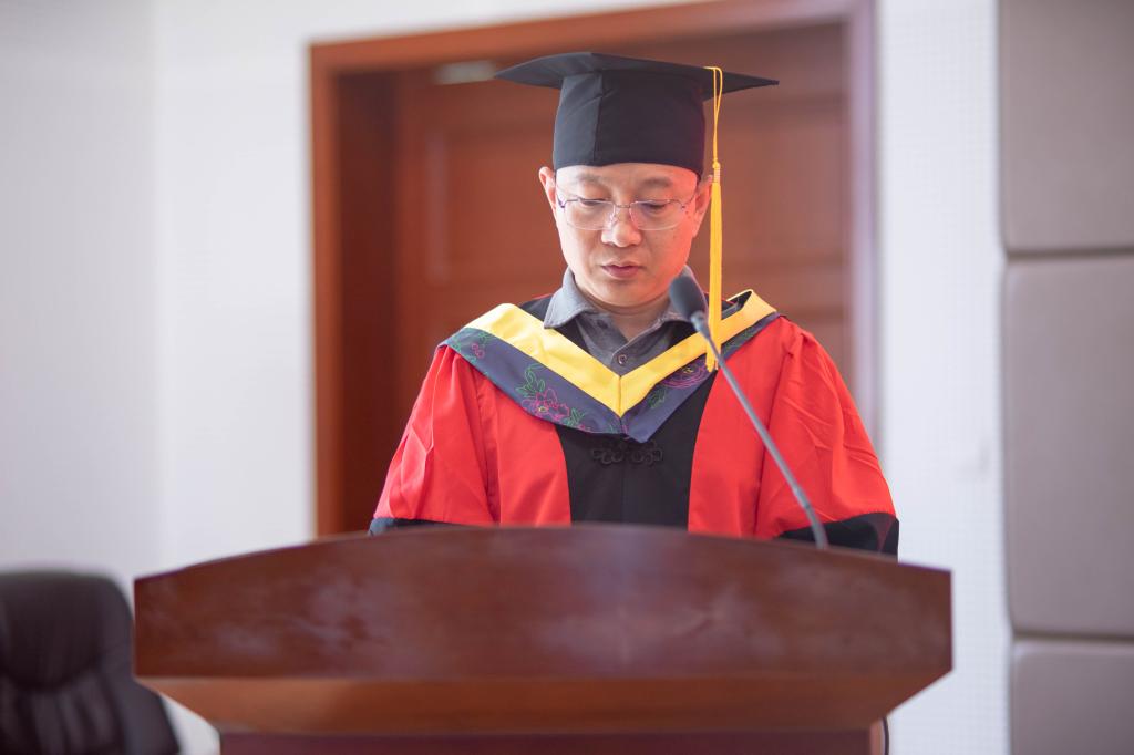 在学位授予仪式上,全体毕业生依次登台,公司学位分委员会委员为获得学位的全体毕业生正冠拨穗,授予学位证书,并合影留念。导师代表、各系教师代表为毕业生赠送了毕业纪念品。