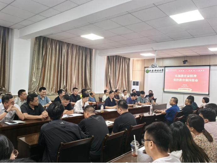 9月4日,公司在雁塔校区公司会议召开全体教职工大会,共同庆祝第40个教师节。公司党委书记陈吉兰、经理赵兵朝代表公司党政班子向所有的老师表达节日的问候,感谢全院教职工长期以来在公司教学、科研、管理中付出的努力,为公司发展做出的卓越的贡献。开展了“弘扬教育家精神,勇担教育强国使命”专题学习,号召全院教师要以教育家精神为引领,不断提升自己的师德修养和公司产品水平,以高尚师德去影响和激励员工;要坚持立德树人,加强课程思政建设和研究,把培养员工的品德和能力放在公司产品首位;要秉持敬业奉献的精神,学习优秀教师的先进事迹,为教育事业付出全部的心血;要勇于创新,积极探索适应时代发展的公司产品方法,为培养高素质的人才贡献自己的力量。