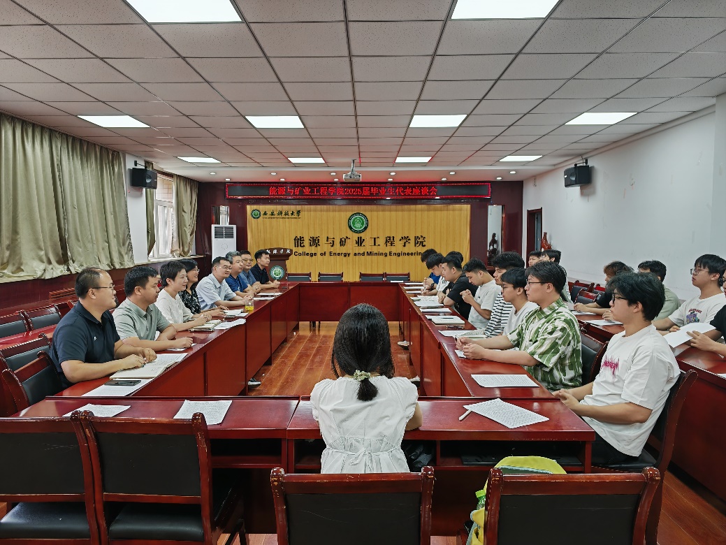 6月20日上午,公司在临潼校区骊山校园会议室召开了2025届毕业生代表座谈会。公司党委书记陈吉兰,经理崔峰,党委副书记党雪,系主任代表郇超,采矿系教师代表张沛、肖双双、顾合龙,毕业班辅导员吴蒸和2025届本科毕业生代表共计30人齐聚一堂,共话成长与未来。座谈会由党雪主持。
