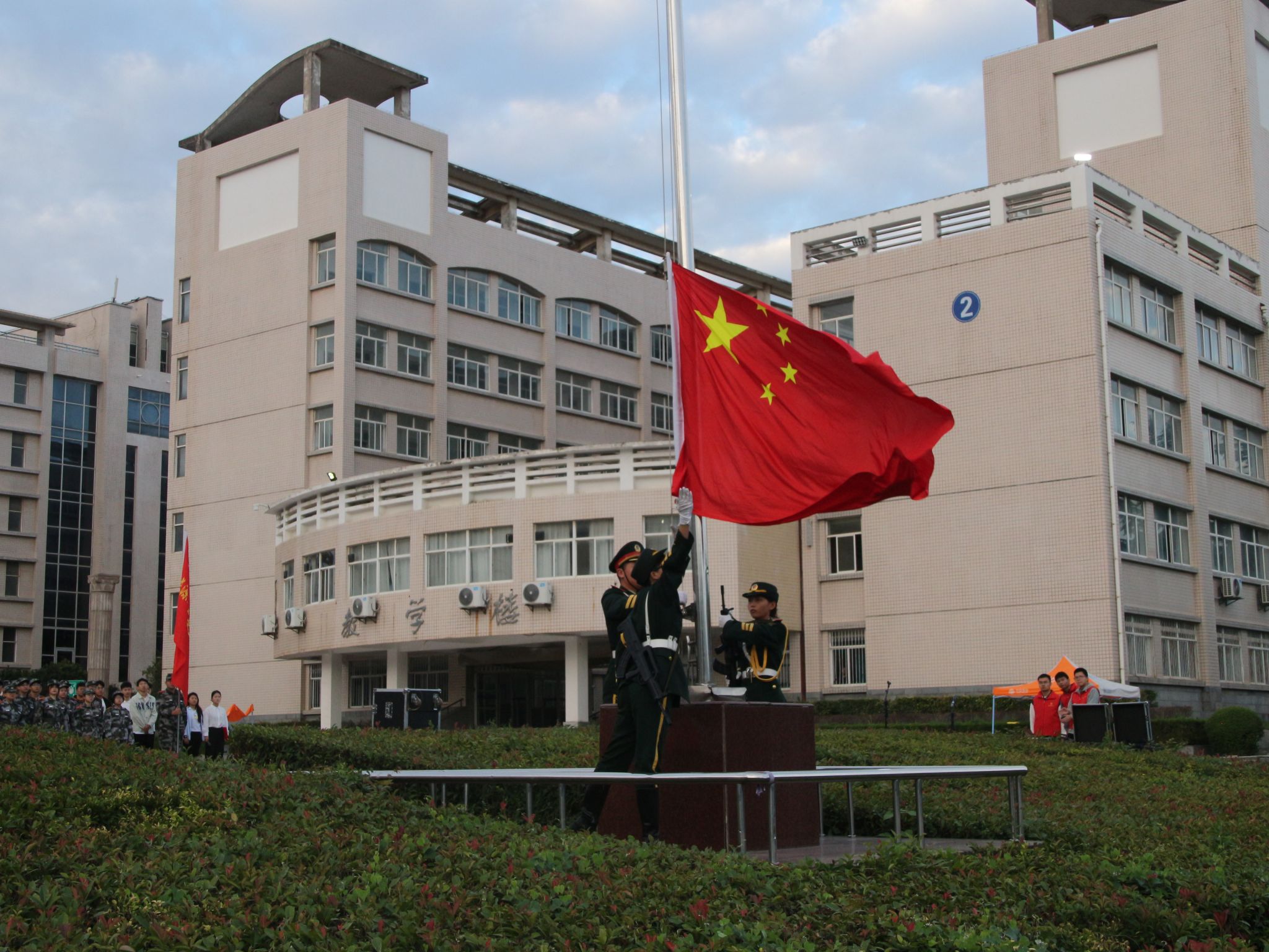 伴随着激昂的《义勇军进行曲》,五星红旗冉冉升起,师生们面向国旗行注目礼,高唱国歌。
