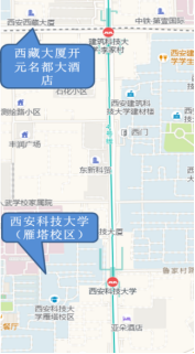 XC体育(雁塔校区)与会议地点方位图: