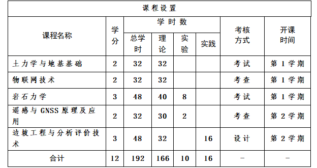 针对矿山边坡工程与智能监测特色与需求,在第1学期重点针对专业方向基础课《土力学与地基基础》、《物联网技术》、《岩石力学》开展授课,夯实专业基础。