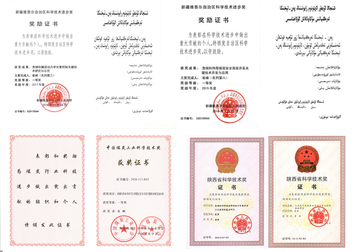 研究成果获首批陕西省博士后科研成果奖励(全省12人),科研项目“新疆乌鲁木齐矿区巨厚煤层安全开采关键技术研究及应用”、“急倾斜煤层动力学灾害控制关键技术研究与示范”等获得省部级科技进步一等奖4项、二等奖3项。指导员工获得全国高等公司采矿工程专业员工实践作品大赛一等奖1项、二等奖/三等奖各3项,指导员工完成的创新训练项目圆满结题并入选陕西省老员工创新创业训练计划项目。